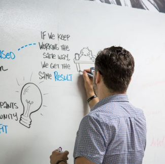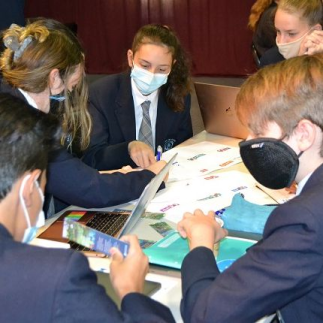 Engaged students working collaboratively to find a solution to a real problem or issue